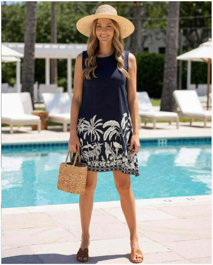 A classic black base with an white jungle print. Lightweight and flattering, it’s ideal for casual wear or easily dressed up with accessories for a relaxed, resort-ready look. Features:
