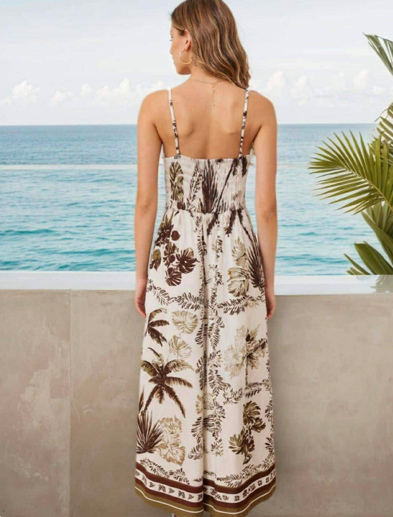 Adjustable Strap Shirred Maxi Dress
